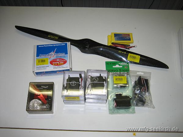 Zubehör: Powerbox Sensor, Meijzlik 23x8, Kokam 1250mAh Akkus und Servos...
