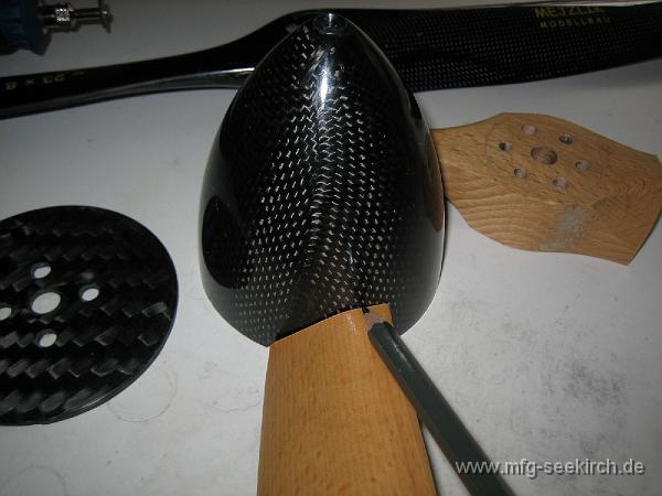 Zum Anzeichnen des Ausschnittes für die Luftschraube am Spinner durfte eine alte Luftschraube herhalten.