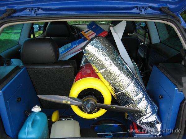 Auto voll und ab gehts auf den Flugplatz. (Das ist übrigens kein LKW sondern ein kleiner VW Polo - Ladewunder halt. Da würden locker noch 2-3 Flieger rein passen) |