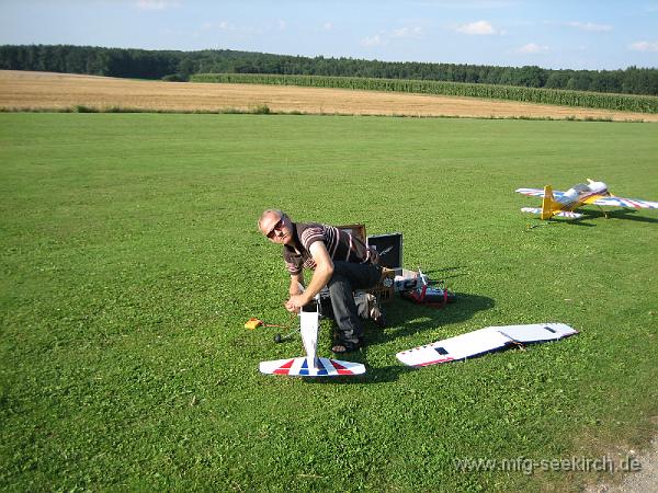 Hans beim Zusammenbau seiner Charter. Im Hintergrund sieht man schon die aufgebaute Yak von Joachim.